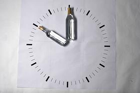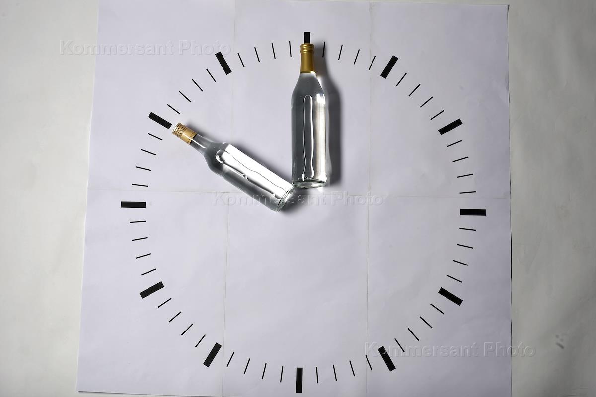 Обложка журнала "Деньги". Две бутылки в виде стрелок на часах.
