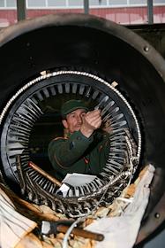 Жанровая фотография. Цех электромеханического завода. Работник ремонтирует статор электродвигателя.