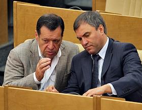 Член комитета Государственной думы (ГД) России по бюджету и налогам Владимир Пехтин (слева) и член…
