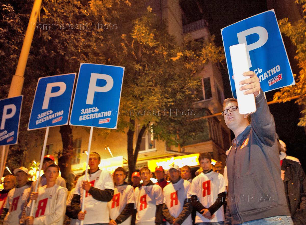 Политика Пикет активистов "Молодой Гвардии "Единой России" с целью обратить внимание общественности на незаконность платной парковки у ночного клуба "Imperia Lounge".