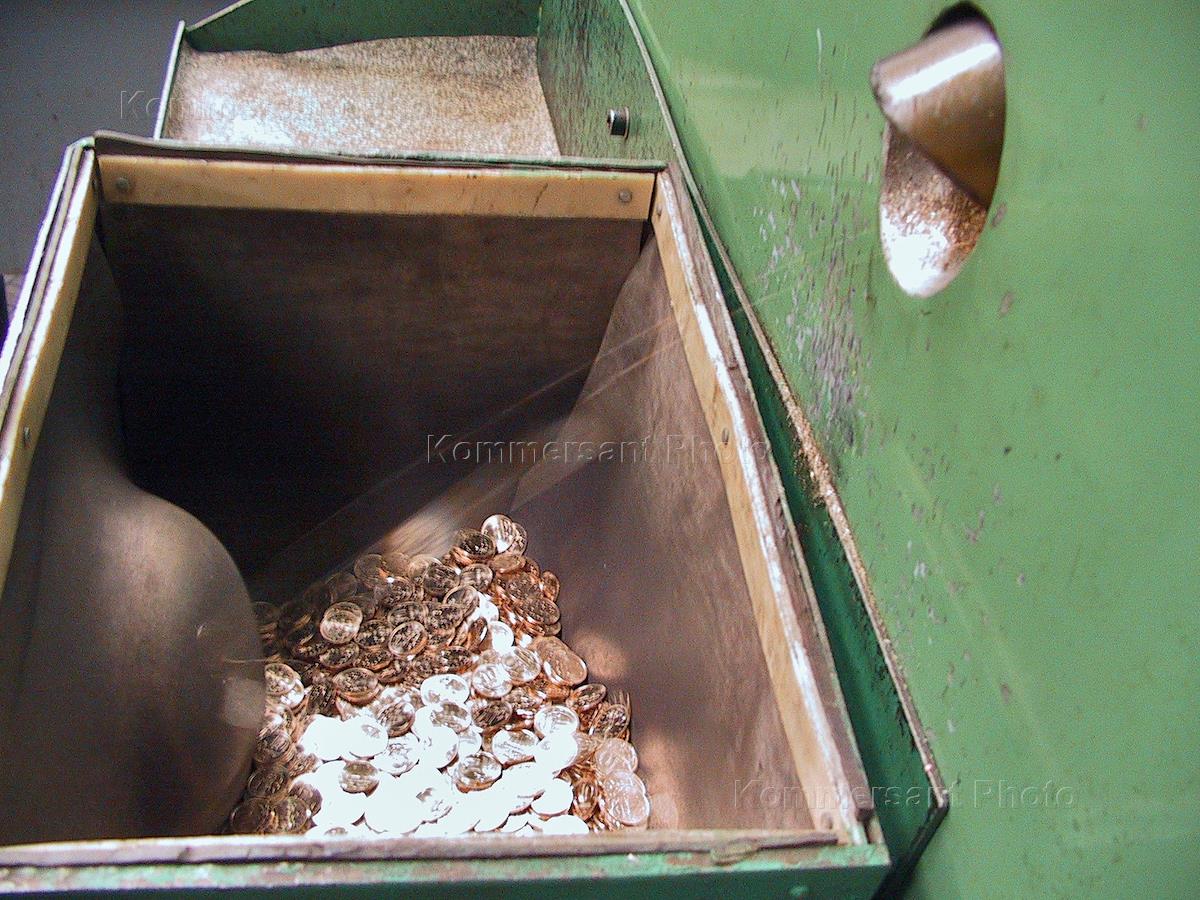 Чеканка монет на Монетном Дворе в Санкт-Петербурге.