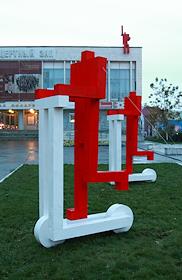Пермская уличная скульптура. Художник и дизайнер Андрей Люблинский из арт-группы Pрrofessors установил в центре Перми «Red People» - красных человечков.