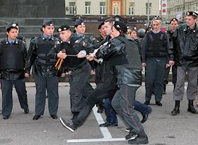 Гей-активист Николай Алексеев (второй справа) во время задержания после пикета гей-активистов против…