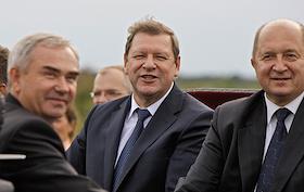Премьер-министр Белоруссии Сергей Сидорский (слева) во время посещения фольклорного фестиваля в…