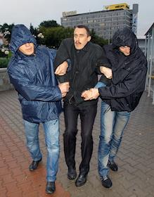 Лидер молодежной оппозиции Павел Северинец (в центре) был задержан милицией перед началом проведения…