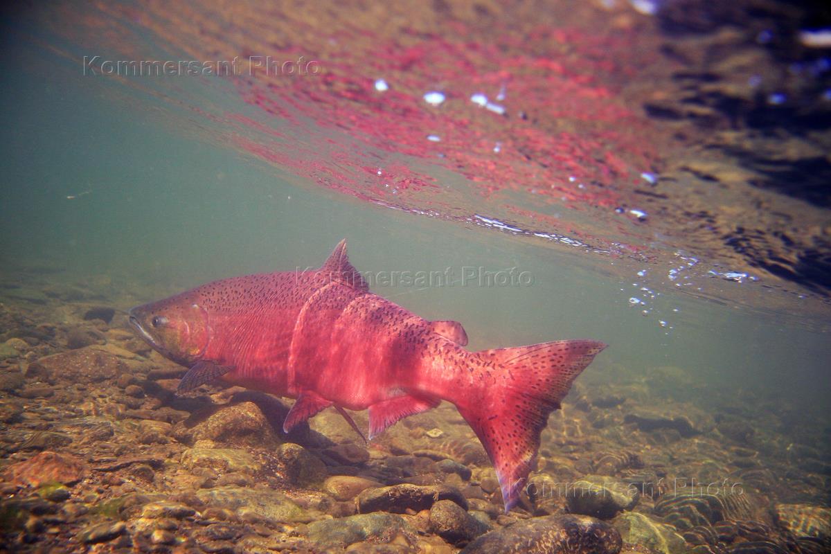 Жанровая фотография. Чавыча, рыба семейства лососевых, во время нереста, в брачном наряде (окраске).