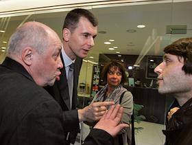Слева направо: главный редактор журнала GQ Николай Усков, президент группы ОНЭКСИМ Михаил Прохоров и…