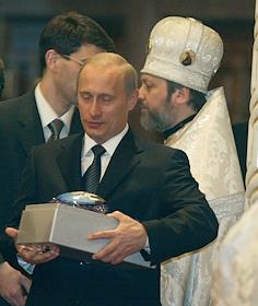 Мэр Москвы Юрий Лужков (слева) и вице-мэр Валерий Шанцев (справа) во время праздничного богослужения…