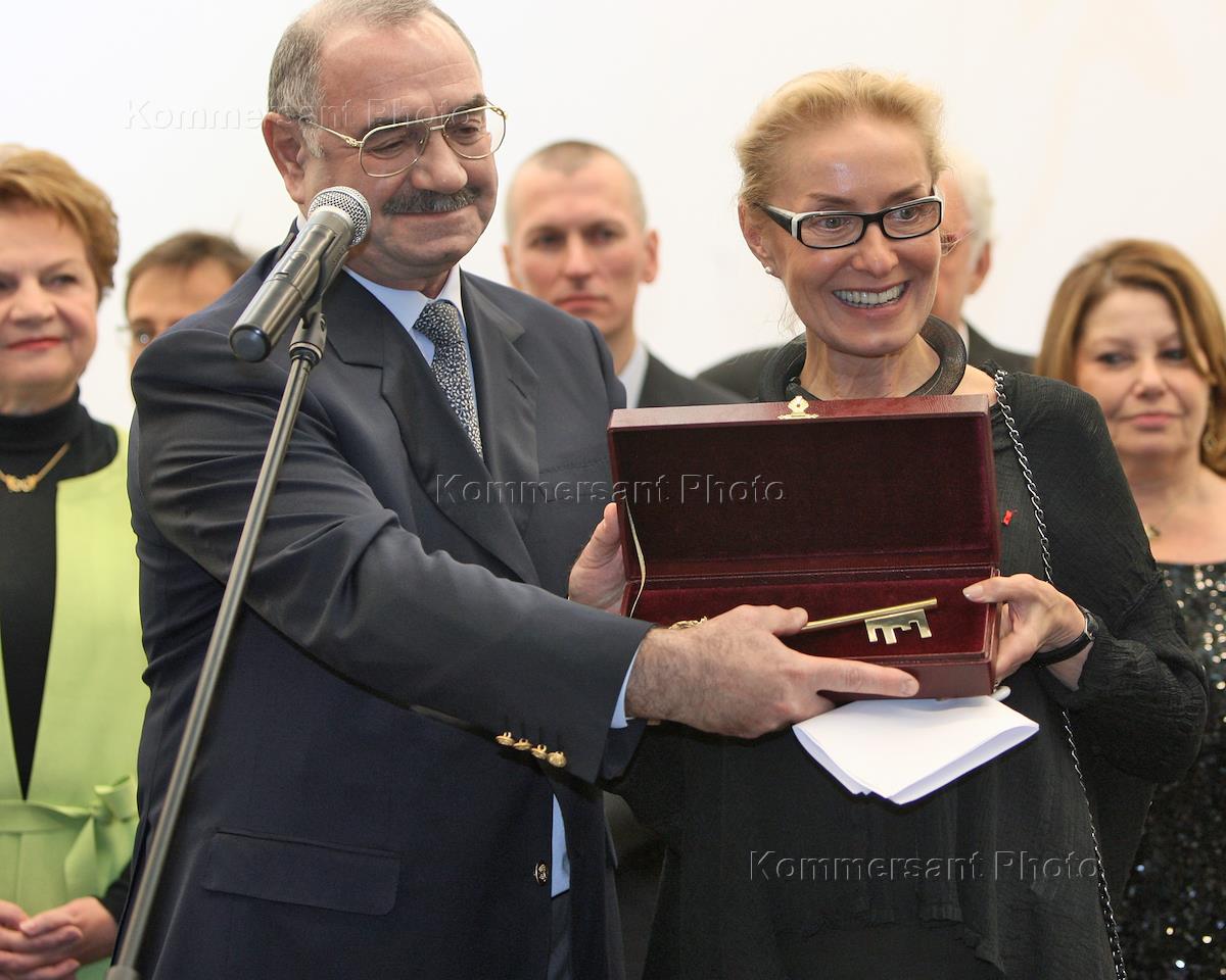 Журналист Леонид Парфенов (слева) и директор Московского дома фотографии Ольга Свиблова (справа) на…