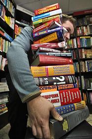 Покупатель в отделе справочной литературы в магазине "Буква".