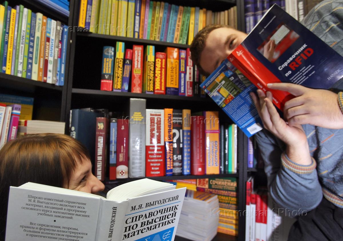 Покупатели в отделе справочной литературы в магазине "Буква".