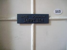 Жанровая фотография. Табличка на двери "Вход больным запрещен".