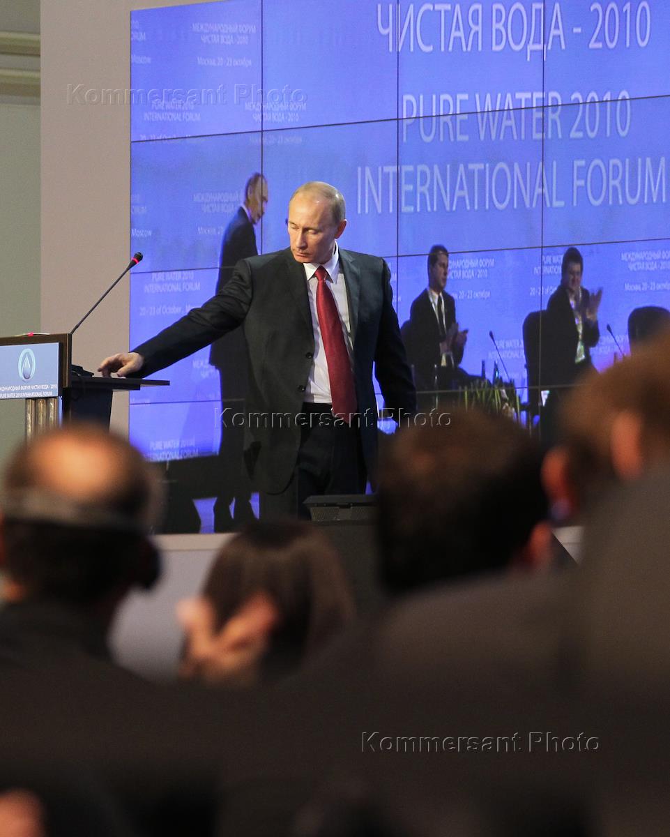 Председатель Правительства РФ Владимир Путин на открытии Международного форума "Чистая вода-2010" в Экспоцентре.