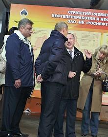 Председатель правительства России Владимир Путин (в центре) и президент НК "Роснефть" Эдуард…