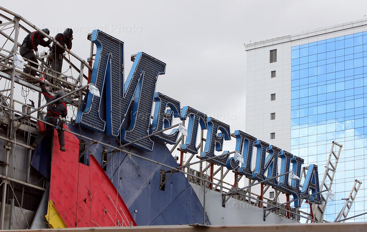 Жанровая фотография. Демонтаж вывески развлекательного комплекса "Метелица".