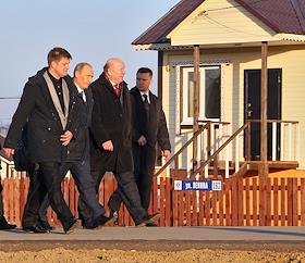 Председатель правительства России Владимир Путин (справа) во время инспекции работ по восстановлению…