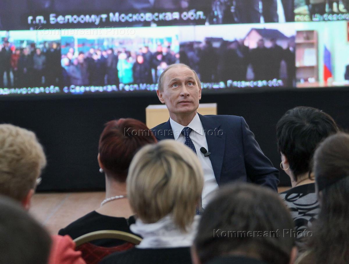 Председатель правительства России Владимир Путин во время встречи с жителями деревни Верхняя Верея,…