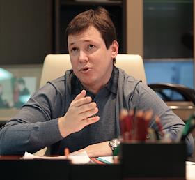 Глава дирекции железнодорожных вокзалов ОАО "Российские железные дороги" (РЖД) Сергей Абрамов во время интервью.