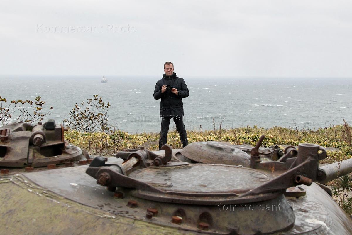Рабочая поездка президента России Дмитрия Медведева на Южные Курилы. Президент России Дмитрий…