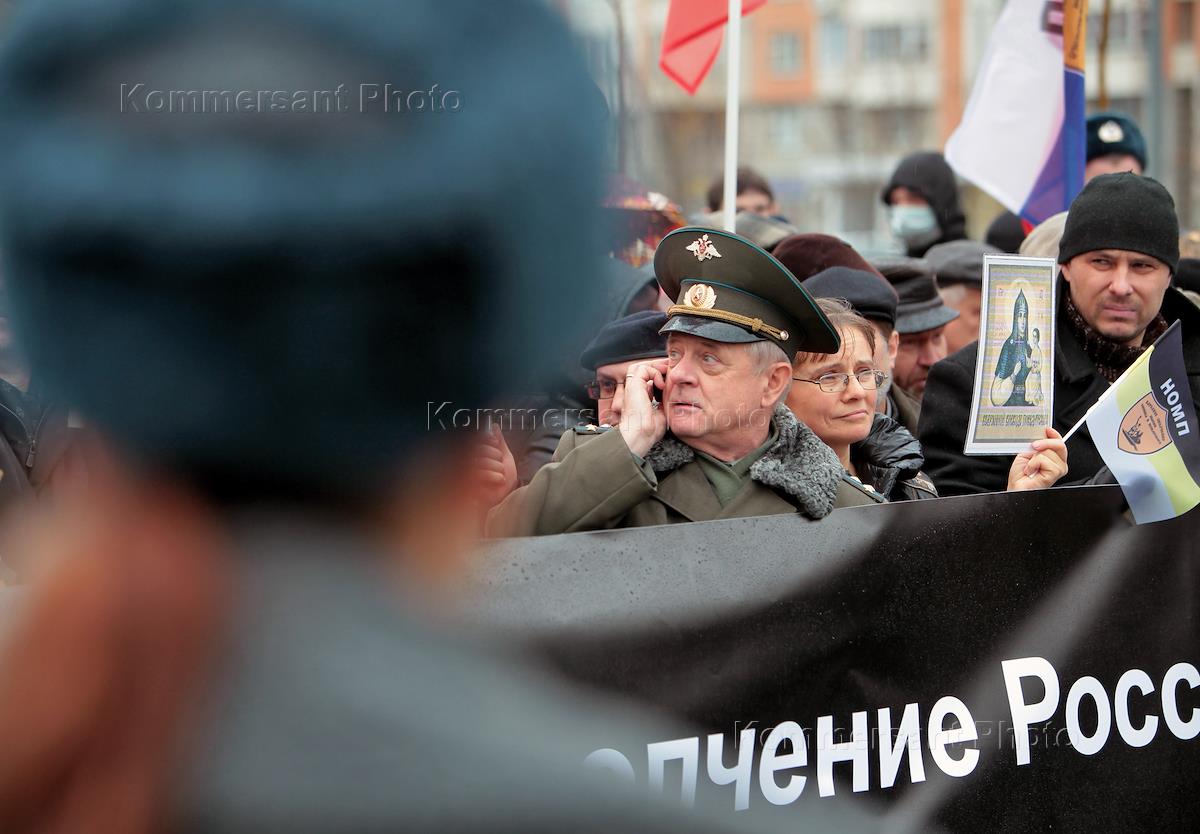 Полковник Владимир Квачков (второй слева) во время проведения Шествия-митинга "Русский марш". Акция,…