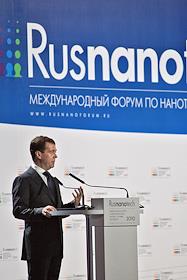 Президент России Дмитрий Медведев на третьем Международном форуме по нанотехнологиям "Rusnanotech…