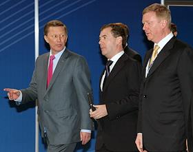 Слева направо: заместитель председателя Правительства России Сергей Иванов, президент России Дмитрий…