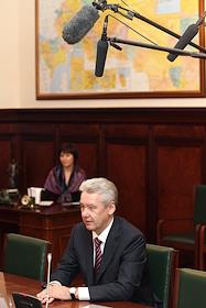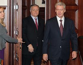 Встреча мэра Москвы Сергея Собянина с президентом ОАО "Российские железные дороги" (РЖД) Владимиром Якуниным в офисе РЖД.
