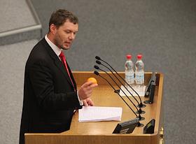 Член комитета Государственной думы России по бюджету и налогам Дмитрий Савельев на заседании Госдумы.