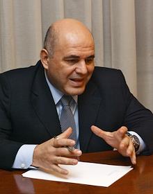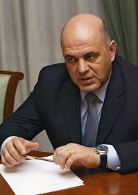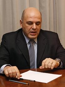 Руководитель Федеральной налоговой службы Михаил Мишустин во время интервью.