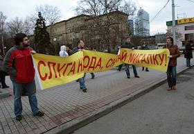 Акция протеста автомобилистов против автомобилей со спецсигналами ("мигалками") на Кутузовском…
