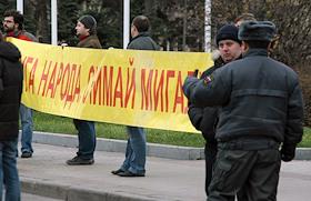 Акция протеста автомобилистов против автомобилей со спецсигналами ("мигалками") на Кутузовском…