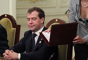 Президент России Дмитрий Медведев во время церемонии подписания совместных документов по итогам…