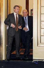 Президент Группы "ОНЭКСИМ" Михаил Прохоров (слева) и руководитель Федеральной налоговой службы…