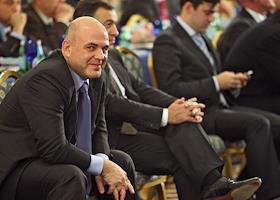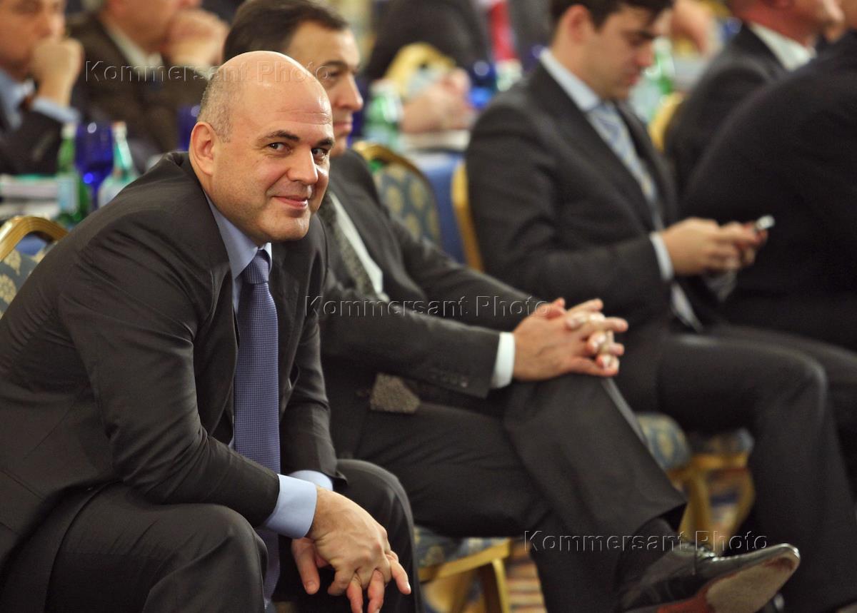 Руководитель Федеральной налоговой службы России Михаил Мишустин (слева) во время Международной…