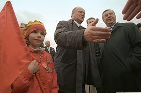 Лидер КПРФ Геннадий Зюганов (в центре) и председатель Государственной Думы России Геннадий Селезнев…