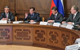 Слева направо: президент России Дмитрий Медведев, заместитель председателя Правительства России…
