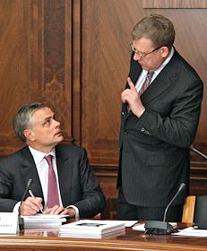Заместитель председателя правительства России, министр финансов Алексей Кудрин (слева) и полномочный…