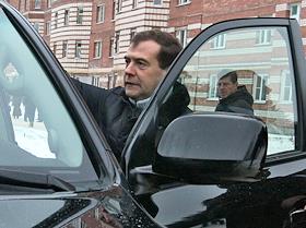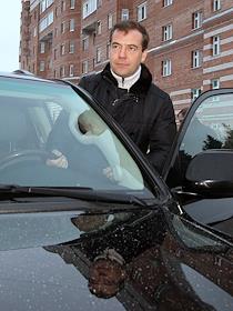 Президент России Дмитрий Медведев после посещения товарищества собственников жилья "Перекресток".
