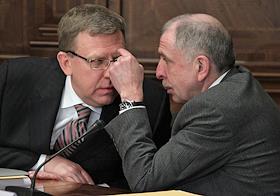Помощник Президента России Александр Абрамов (слева) и министр финансов Алексей Кудрин (справа) на…