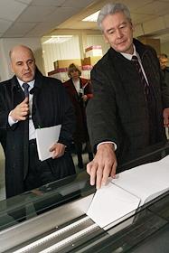 Мэр Москвы Сергей Собянин во время посещения Налогового городка на Походном проезде.