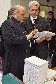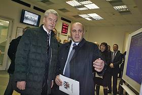 Экономика и бизнес Мэр Москвы Сергей Собянин и глава Федеральной налоговой службы Михаил Мишустин во время посещения Налогового городка на Походном проезде.