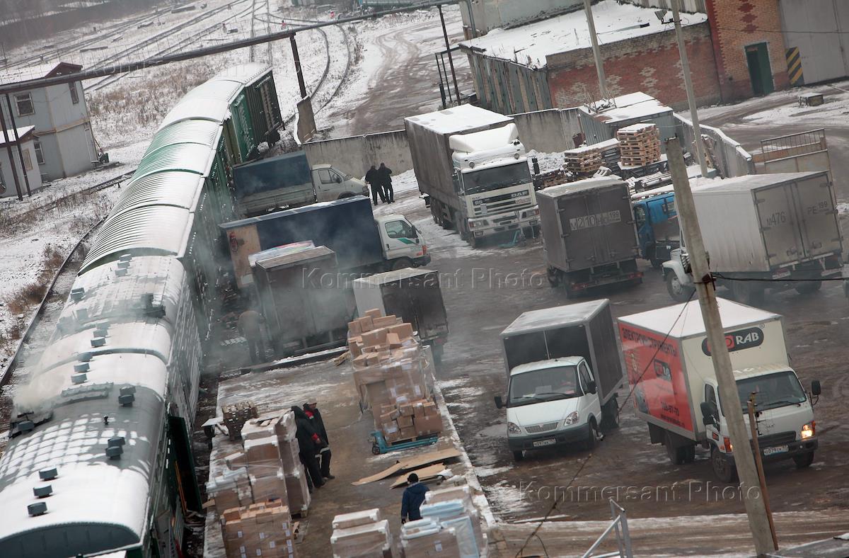 Разгрузка товаров на станция Москва - Товаврная - Ярославская (Северянинский мост).