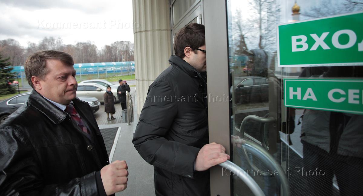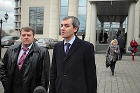 Адвокаты Александр Попов (слева) и Марсель Валиуллин (справа) после заседания Московского городского…