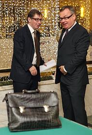 Президент "Альфа-банка" Петр Авен (слева) и президент "Внешторгбанка" Андрей Костин (справа) на…