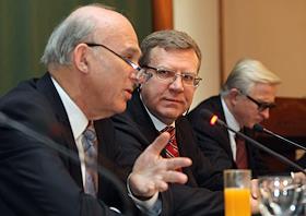 Экономика и бизнес Заседание межправительственного комитета по торговле и инвестициям с участием главы Минфина РФ Алексея Кудрина и министра бизнеса Великобритании Винса Кейбла, в Президент Отеле.