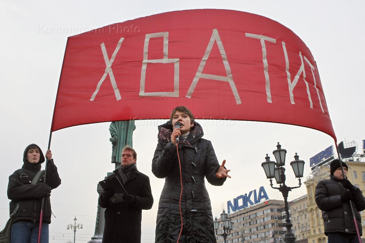 Лидер движения по защите Химкинского леса Евгения Чирикова на митинге в защиту журналистов. Митинг…