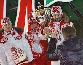 Фехтовальщик Павел Колобков (в центре) и олимпийский чемпион по спортивной гимнастике Алексей Немов…