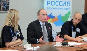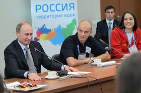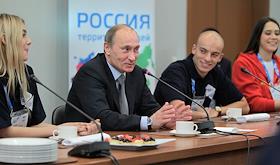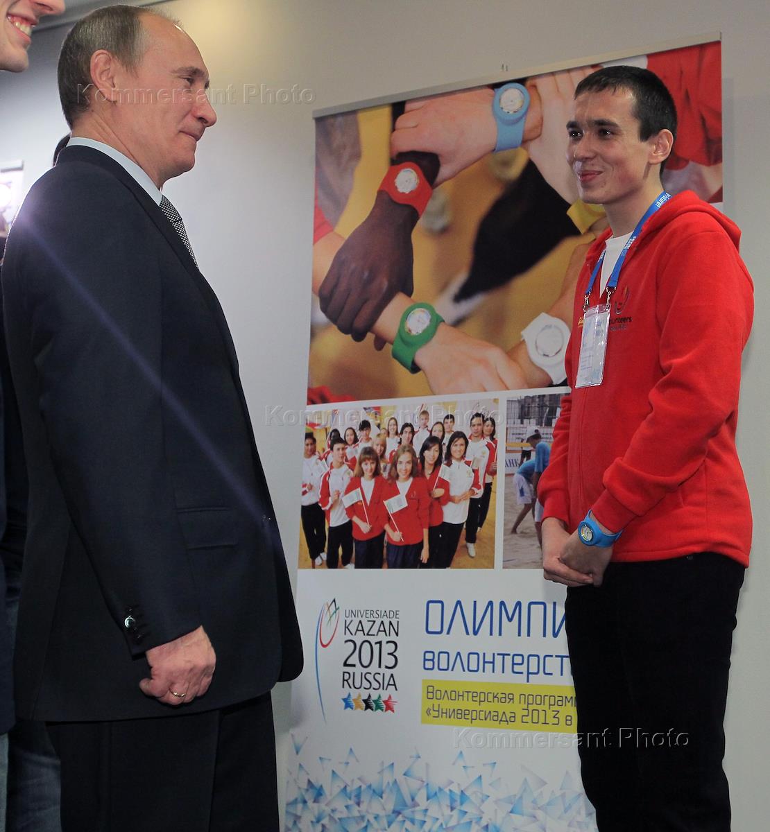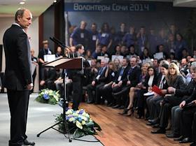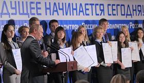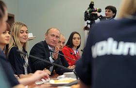 Встреча Главы правительства РФ Владимира Путина с членами волонтерской сборной в Центре международной торговли.