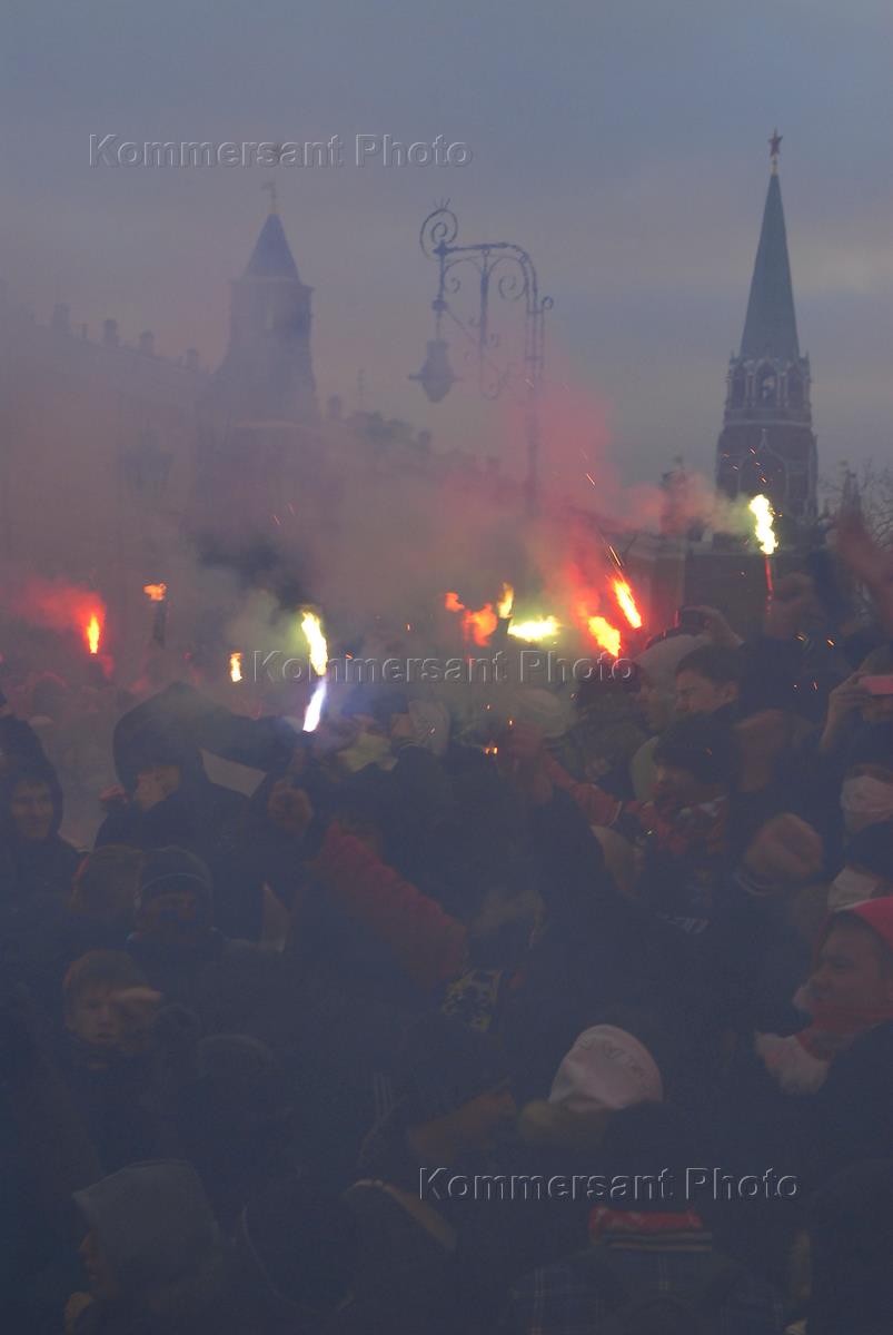 Акция памяти Егора Свиридова, организованная московскими болельщиками футбольного клуба "Спартак" на Манежной площади.