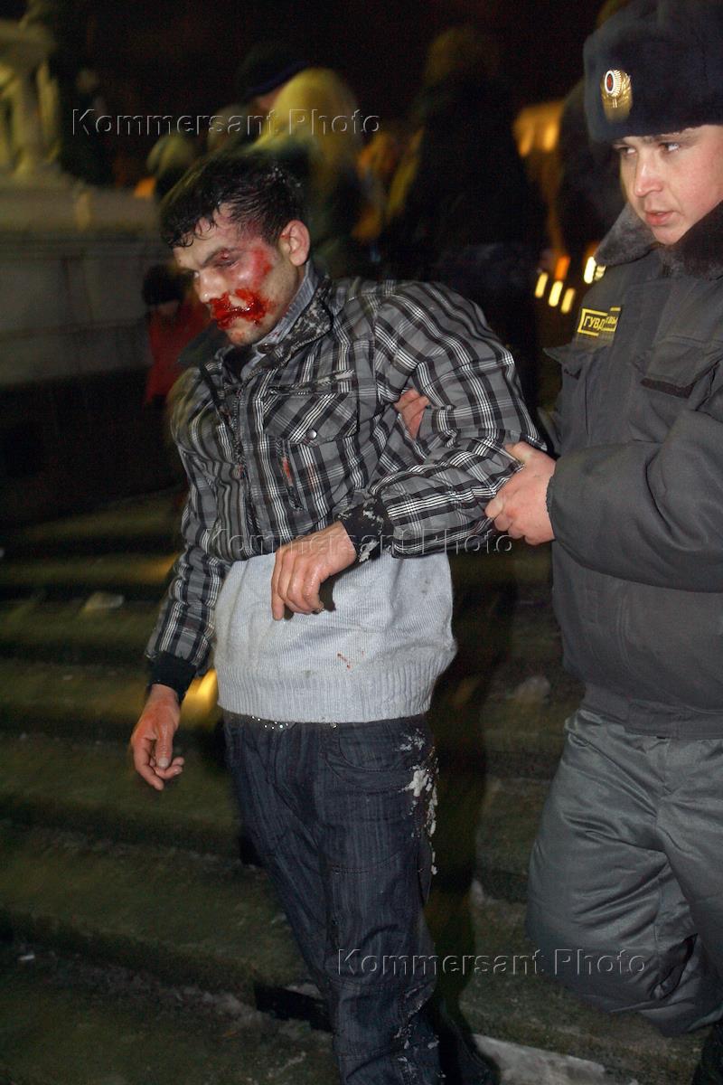 Пострадавший во время акции памяти Егора Свиридова, организованная московскими болельщиками…